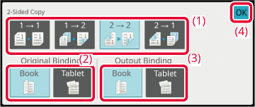 BASIC PROCEDURE FOR MAKING COPIESSelect the 2-sided copy mode.