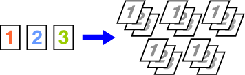Sorts the scanned original on a set basis, and outputs them. Example: When 5 is set for the number of copies in sorting ![]() |