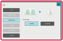 After the settings are completed, tap [OK].This function is used to fold copies before