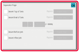 After the settings are completed, tap [OK] key.This function inserts separator pages between
