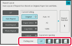 Tap the [Layout w/o spacing] key or the [Layout evenly spaced] key, and then tap the [OK] key.Specify the repeat partition line.