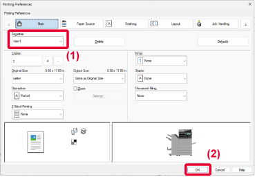 For explanations of the settings, see printer driver Help.When using this machine as a shared printer,