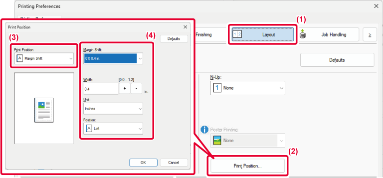 - Click the [Print Position] button.