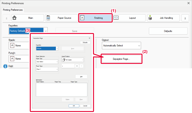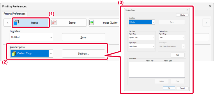 Select [Tab Paper] in [Inserts Option] on the [Inserts] tab