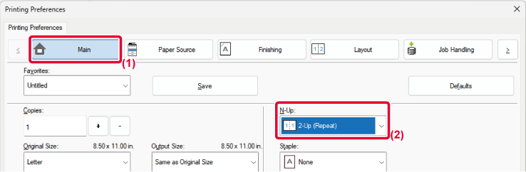 1 and recycled paper is loaded into tray 2 as necessary, selecting