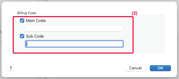 When printing starts, the billing code setting screen
