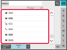 The last 50 addresses used for transmission are displayed.Number sequences entered