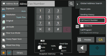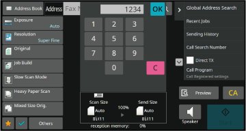 Tap the [Direct Entry] key or [Fax Number] to enter the destination fax number.