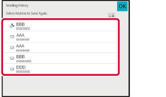 In Easy modeIn the base screen or address book screen, tap [Sending History] on the action panel.