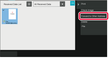 The received data is listed.Tap the key of the received data you wish to forward, and tap [Forward to Other Address].
