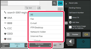 on the base screen in image send mode such as fax, e-mail, or Internet