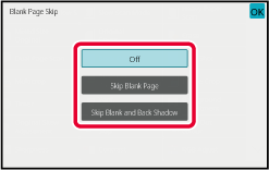 Tap the [Skip Blank Page] or [Skip Blank and Back Shadow] key.