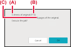 A beep will sound to indicate that scanning has ended.When scanning ends, check the number of original sheets and the number of sheets to be sent and tap the [Execute] key to start transmission.