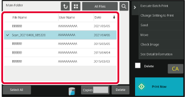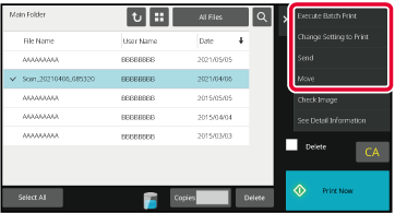 When the folder is selected, the files in the folder will appear. Select the file that you wish to retrieve.Select an operation item.