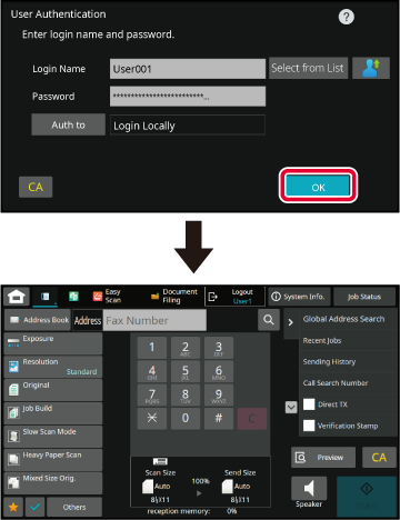Tap the [Auth to] key and set the authentication destination.