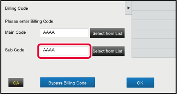 Returns the screen to the billing code entry window.Tap the [Select from List] key of the sub code.