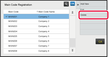 Tap and select the main code to be deleted, then tap [Delete] on the action panel.