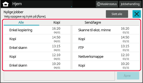 Trykk på denne tasten for å vise innholdet for Opptil 10 jobbene