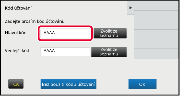 Když je zobrazeno okno pro zadání kódu účtování, klepněte na klávesu [Zvolit ze seznamu] hlavního kódu.
