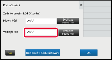 Klepněte na pole [Vedlejší kód] a potom zadejte vedlejší kód.