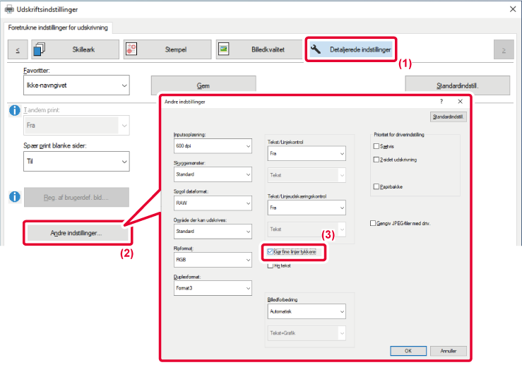 Denne funktion øger tykkelsen af hele linjen, når udskriftslinjerne ikke er tydelige