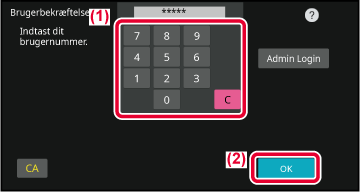 Indtast dit brugernummer (5 til 8 cifre) med de numeriske taster.