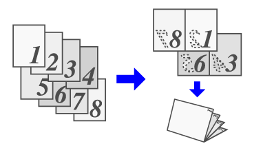 sodass die Blätter gefaltet und geheftet werden können, um eine Broschüre zu erstellen.