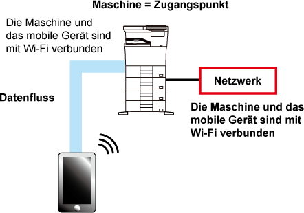 Das Gerät und das Mobilgerät kommunizieren direkt per WLAN. In diesem Modus ist eine
