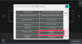 Οι ρυθμίσεις θα αποθηκευτούν στο μηχάνημα και θα εφαρμοστούν.Μπορείτε να προσθέσετε πλήκτρα συντόμευσης στην αρχική οθόνη, όπως και να διαγράψετε