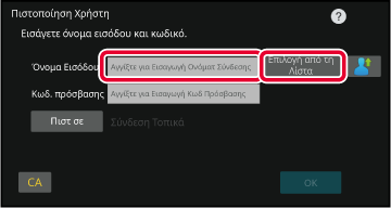 Για τη σύνδεση με χρήση αριθμού χρήστη που έχει ληφθεί από τον διαχειριστή του μηχανήματος,