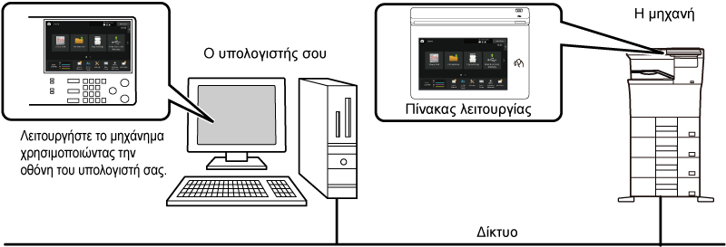 Χειριστείτε το μηχάνημα εξ αποστάσεως μέσω του υπολογιστή σας ή της κινητής συσκευής