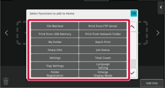When you click the [Submit] button, the [Home Screen Registration] screen closes.When you have finished configuring the settings, click the [Submit] button.