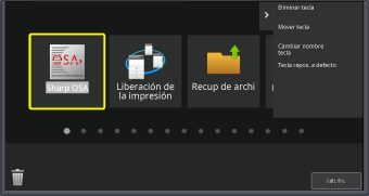Los ajustes se guardarán en la máquina y se aplicarán.Este apartado explica cómo mover una tecla de acceso directo en la pantalla de inicio.
