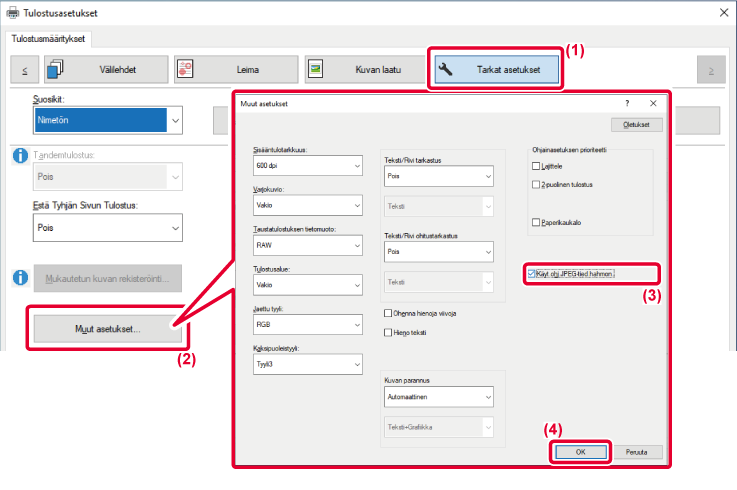 HAHMONNUSMENETELMÄN VAIHTO JA JPEG-KUVIEN TULOSTUS (KÄYTÄ OHJAINTA JPEGIEN HAHMONNUKSEEN)