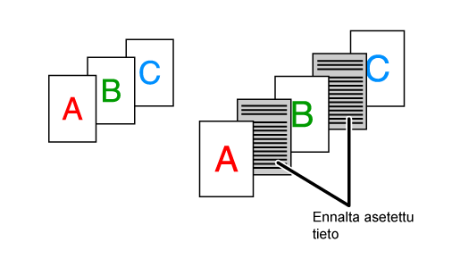 Jos mallitietoja sisältävä paperi monistetaan, mallitiedot tulevat näkyviin taustalla,