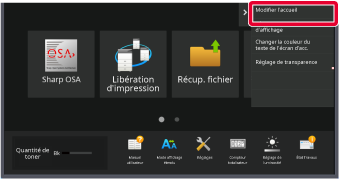 Les réglages sont enregistrés dans la machine et ils sont appliqués.Cette section explique comment modifier une touche de raccourci dans l'écran d'accueil.