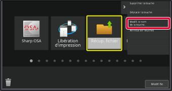 Les réglages sont enregistrés dans la machine et ils sont appliqués.Pour modifier une image de touche de raccourci par une nouvelle image, vous devez
