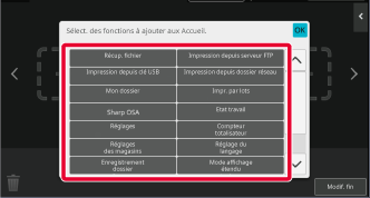 Les réglages sont enregistrés dans la machine et ils sont appliqués.Vous pouvez modifier la position de la touche [Écran d'accueil].