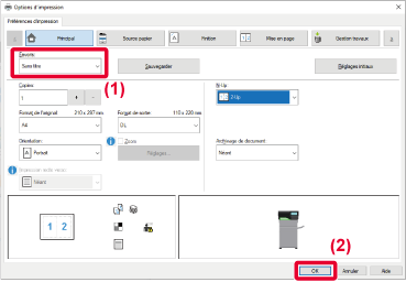 Pour une description des réglages, reportez-vous à l'Aide du pilote d'imprimante.Lorsque vous utilisez cette machine comme imprimante partagée, si "Favoris" est défini