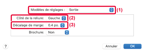 - Sélectionnez le format de sortie et le côté de la reliure spécifiés.