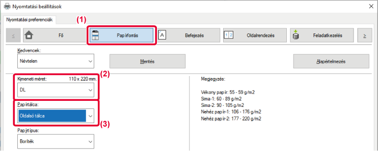 Ha a Kimeneti méret borítékra van beállítva, az [Papírtípus] automatikusan [Boríték]