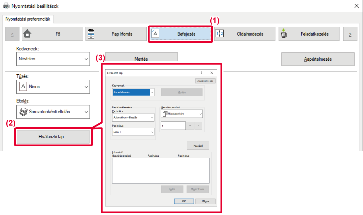 Elválasztó oldalakat szúrhat be a munkák vagy a megadott számú másolatok közé.