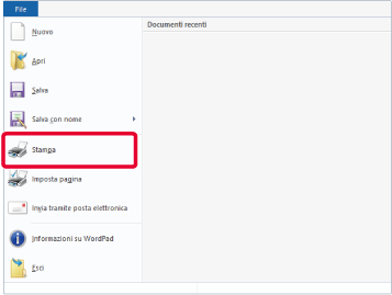 Selezionare [Stampa] dal menu [File] di WordPad.