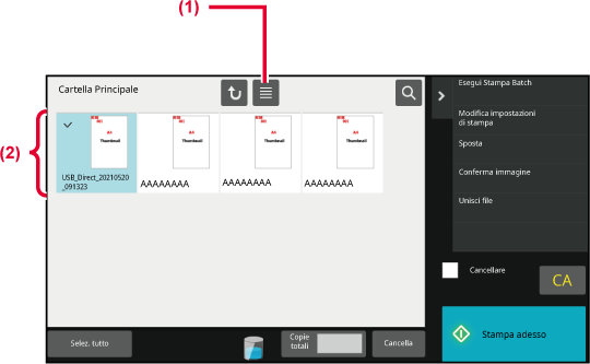 - Seleziona o deseleziona tutti i file. Toccando questo tasto, la modalità di visualizzazione