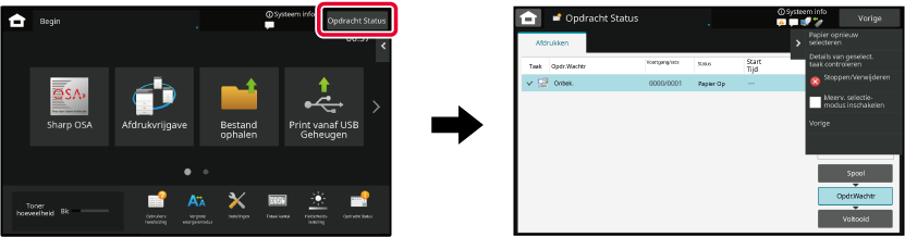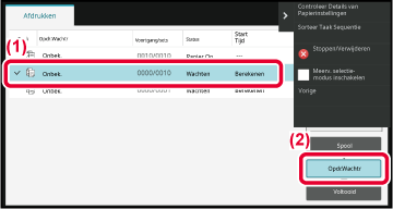 Tik zo nodig op de toets [Spool], [Opdr.Wachtr] of [Voltooid] om de opdrachtenlijstweergave