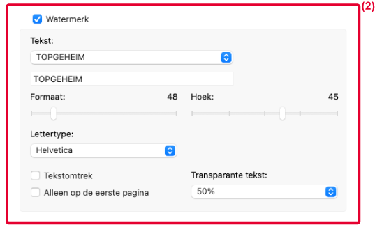 - Selecteer [Watermerken] in de "Printeropties".