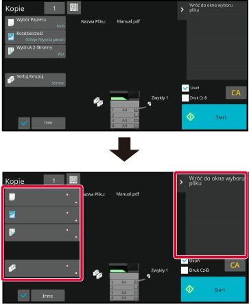 Część ustawień może wymagać podania hasła po kliknięciu [Ustawienia ekranu początkowego].Wybierz [Lewa] lub [Prawa]