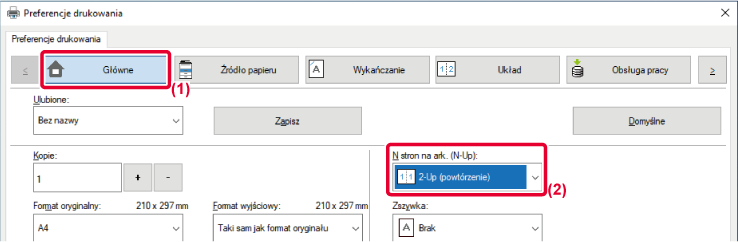 - Wybierz liczbę powtórzeń w polu "N stron na ark. (N-Up)".
