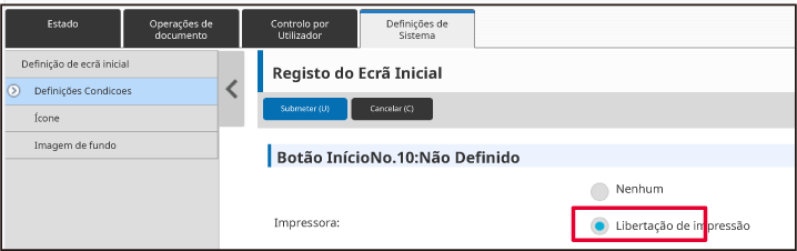 Ao premir a tecla [Submeter], o ecrã [Registo do Ecrã Inicial] é fechado.Finda a configuração das definições, clicar no botão [Submeter].