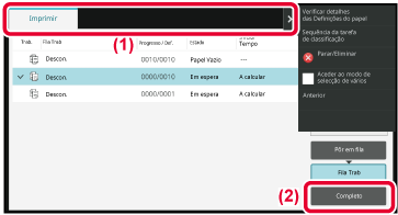 levemente na tecla [Pôr em fila], [Fila Trab] ou [Completar] conforme pretendido.
